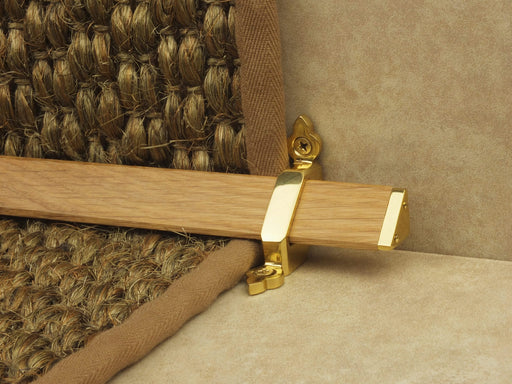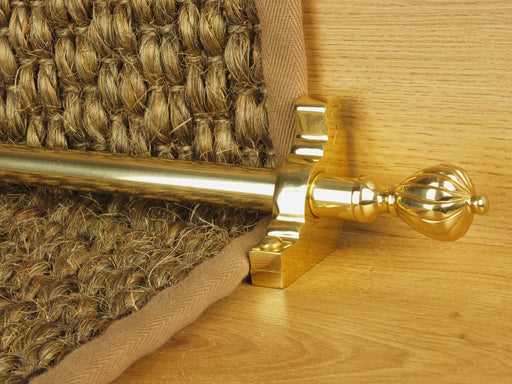 Carpet rods come in a variety of finishes including popular antique brass and polished brass. A more contemporary look is the brushed chrome or satin nickel finish, whilst the Tudor wooden design have a lovely, natural wood appeal.