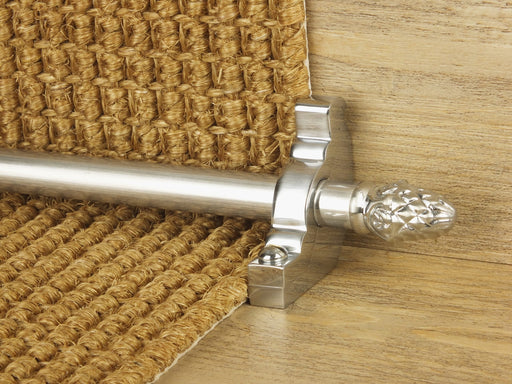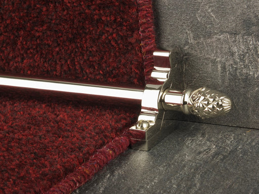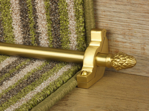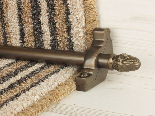 The Blacksmith designs in wrought iron finish complement flecked or berber-styled stair runners. Alternatively, they can look striking when contrasted with a plain carpet in a bold colour or brightly coloured pattern. there are also black door bars available to match. The Tudor design of carpet rods come in either a light or dark wood-effect, both of which are subtle in appearance and add a harmonious touch when they match the finish of your skirting boards, the wood of your staircase, floor or internal doors finished in a natural wood or wood-effect.