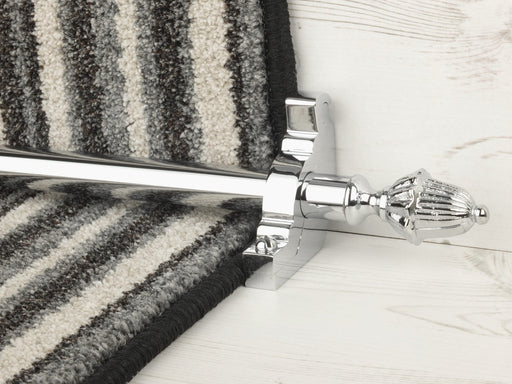 Carpet rods come in a variety of finishes including popular antique brass and polished brass. A more contemporary look is the brushed chrome or satin nickel finish, whilst the Tudor wooden design have a lovely, natural wood appeal.
