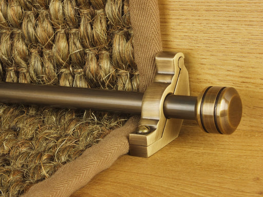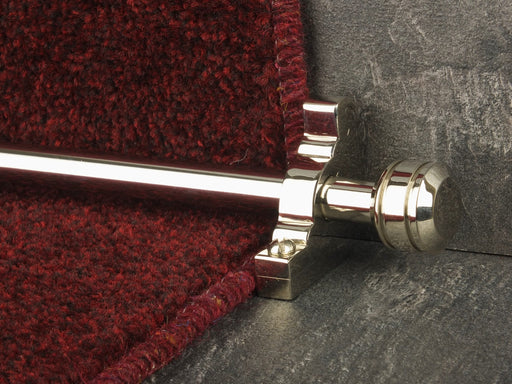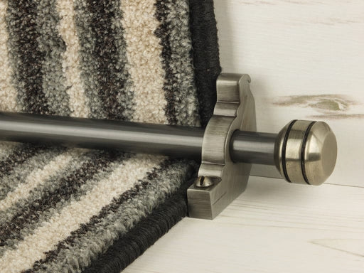 Vision stairrods are available to order for either a stair runner or fitted carpet. Simply select the relevant option when placing your order online. The carpet runner rods designed for a runner are supplied with hinged brackets, which should be located either side of the runners and feature a finial either end. For a fitted (full width stair runner) you should select the Front Fix brackets, which fit over the face of the rod (only) and are attached by screwing through the carpet into the staircase.